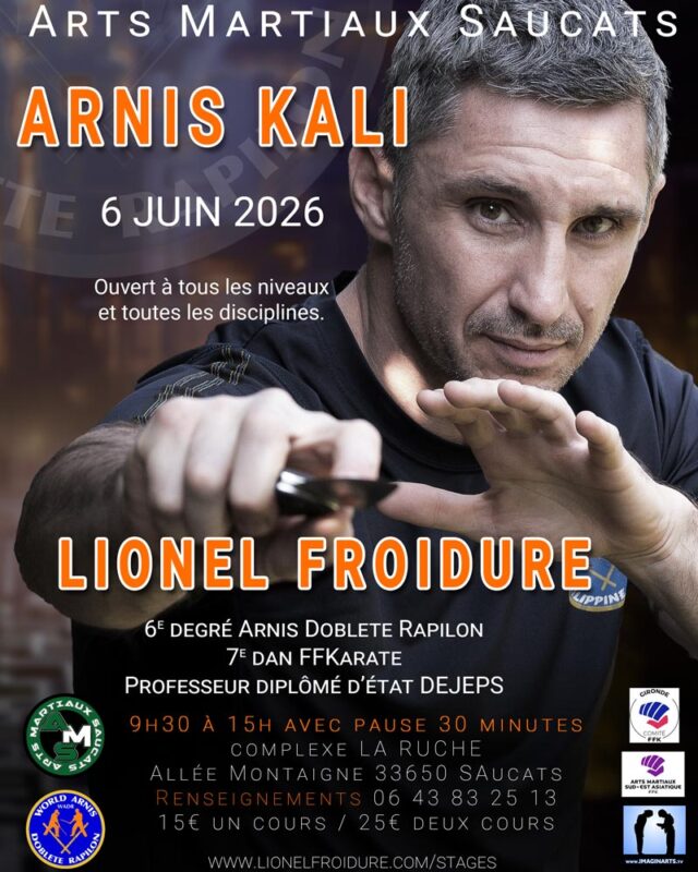 C’est avec une immense joie que je vous annonce mon stage annuel aux Arts Martiaux Saucats, en Gironde, organisé en collaboration avec mon ami Cyril Nogueira ! Une journée arts martiaux philippins et une matinée tournée vers l’enseignement !