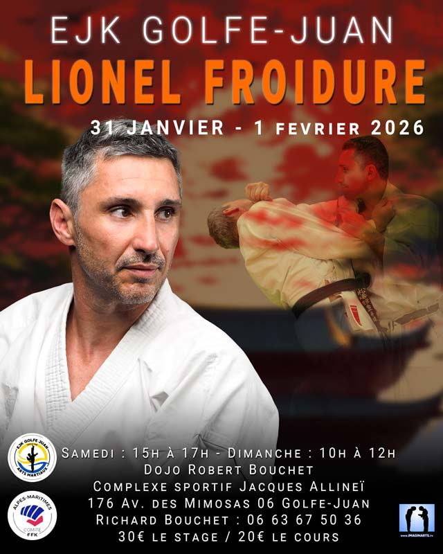 J’aurai le plaisir de revenir diriger un stage de karaté de deux demi-journée à EJK Golfe-Juan / Vallauris dans les Alpes Maritimes, entre Cannes et Antibes. Je vous réserve un superbe programme !